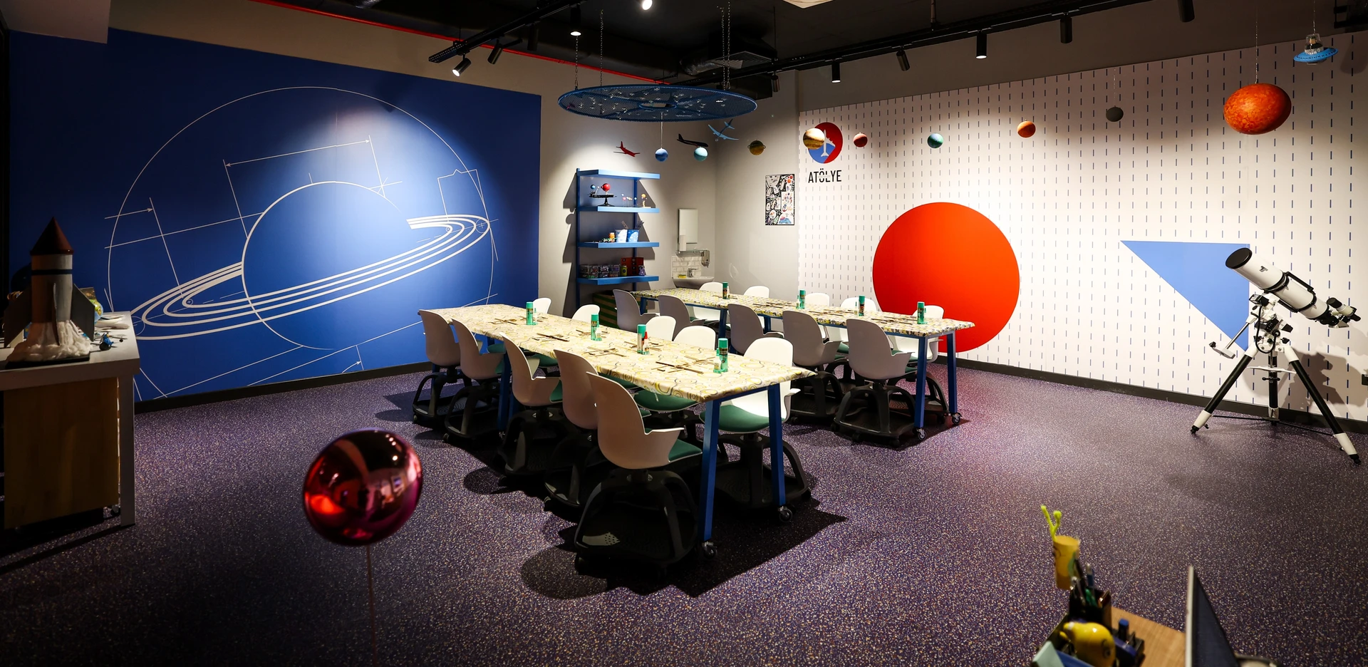 8–16 yaş grubu öğrenciler için bir uzay ve havacılık atölyesinde planlama yapılırken güvenlik, hareket alanı ve uygulamalı öğrenme temel kriterler olmalıdır. Alanın modüler ve çok amaçlı olması, farklı etkinliklerin aynı ortamda rahatça yapılmasını sağlar.