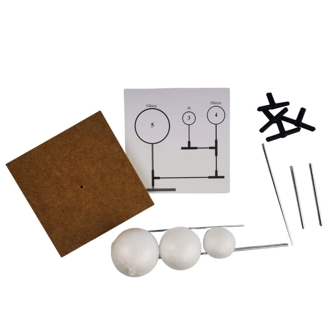 Set içerisinde güneş , dünya ve ay modeli strafor toplar bağlantı parçaları ,demir çubukları ve ahşap bir taban da yer almaktadır. Set içerisinde boya yoktur.