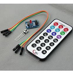 Paket içeriğinde 38 KHz’lik 60 derece’lik görme açısına sahip 1838B kızılötesi alıcı ve 21 butonlu kumanda ile gelmektedir.