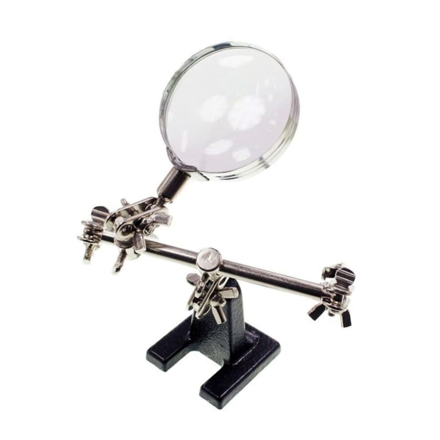 Mercekli Havya Standı, lehimleme işlerinde kullanabileceğiniz bir üçüncü eldir. PCB çerçeveli gerçek cam merceğiyle gelişmiş görüş sunar. Dökme demir tabanı güvenli yerleştirme sağlar. Küçük PCBlerle, elektronik elemanlarla ve saatlerle çalışmak için çok uygundur.
