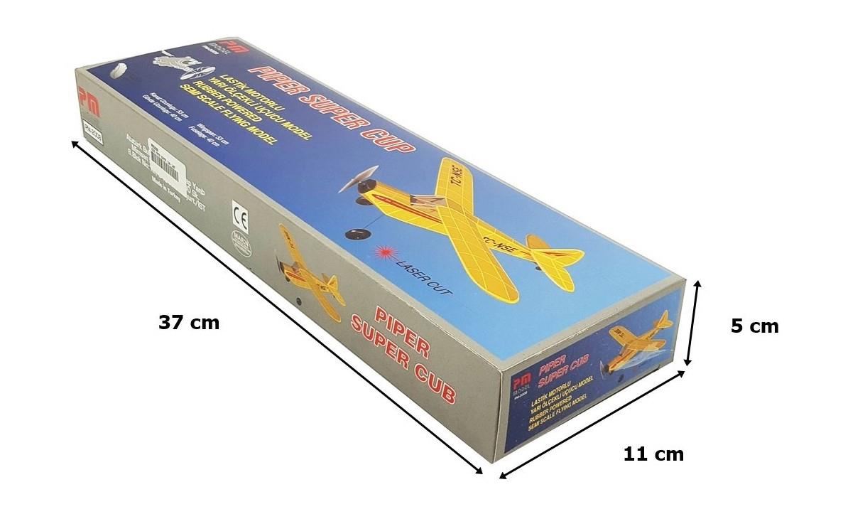 Piper Super Cub modelimiz gerçek bir uçağın küçültülmüşüdür; ancak bunu yaparken biz kanadı biraz daralttık, bu nedenle modelimizi yarı ölçekli olarak nitelendiriyoruz.Piper Super Cub gövdeli üstten kanatlı yapımı kolay bir modeldir.Piper S.Cub modelinin kutusu içinde CNC de bükülmüş iniş takım teli, plastik pervane, plastik tekerlekler, plastik başlık, plastik arka tekerlek ve çok şık bir çıkartma seti vardır.