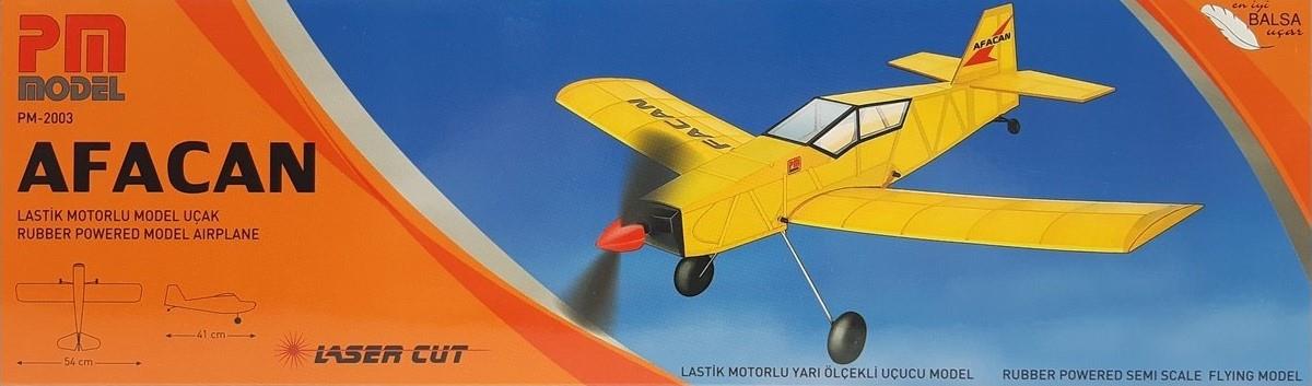 Afacan modelimiz lastik motorlu, gövdeli alttan kanatlı yapımı çok kolay modeldir. Tüm inşaat lazer kesim olup balsa ağacındandır. Afacan modelinin kutusu içinde CNC de bükülmüş iniş takım teli, plastik pervane, plastik tekerlekler, plastik başlık, plastik arka tekerlek, plastik kanat bağlama pimleri ve çıkartma seti vardır. Afacan modeli eğer plana uygun yapılırsa çok güzel uçmaktadır.