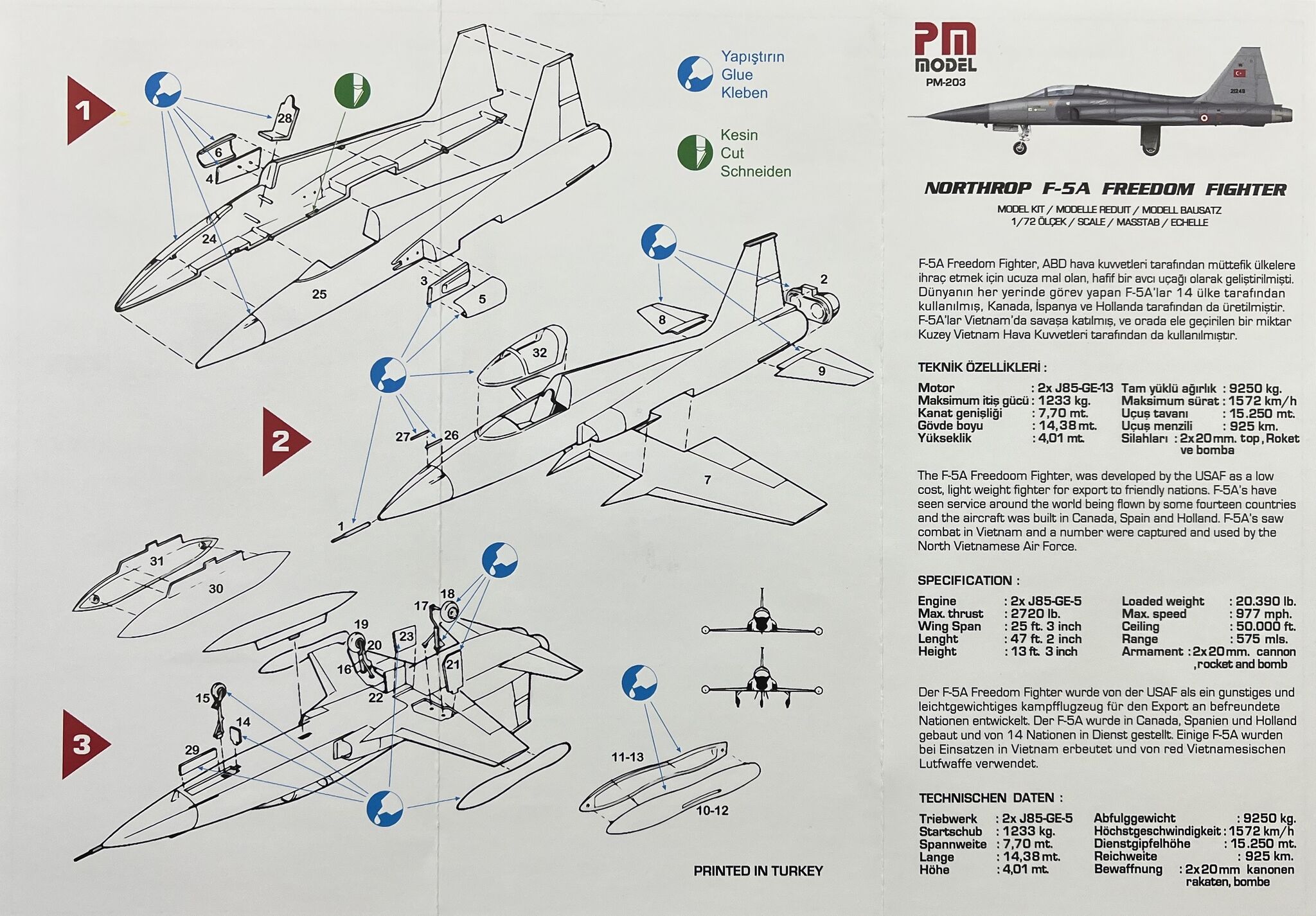 F-5, 1960’larda hafif ve ucuz bir savaş uçağı sunan tek üretici olan Amerikan şirketi Northrop tarafından tasarlanıp üretilen efsanevi bir savaş uçağıdır. F-5, tek kişilik, savaş uçağı olarak adlandırılan F-5A ve çift kişilik, eğitim ve savaş uçağı olan F-5B olmak üzere iki versiyonda üretilmiştir. F-5, modern savaş uçaklarından çok daha küçüktü ve popüler F-4 Phantom’un ağırlığının yaklaşık üçte biri kadardı. Bu küçük boyutunu, kullanılan motorlara borçluydu. Northrop’un tasarımcıları, güdümlü füzeler ve insansız hava araçları için üretilen küçük turbojet motorlarının geliştirilmesinde erken bir ilerleme gördüler. Bu motorların uygun bir itme-ağırlık oranına sahip olduğunu ve nispeten küçük oldukları için çift motorlu bir uçakta kullanılabileceğini, böylece daha yüksek itme güvenilirliği sağlayabileceğini keşfettiler. Uçakta karmaşık aviyonik ve elektronik sistemler bulunmadığından, görev hazırlığı ve denetimler fazla iş gerektirmiyordu. Sonuç olarak, bu uçaklarla donatılmış birliklerin muharebe hazırlık faktörü, özellikle o dönemin diğer süpersonik uçaklarıyla karşılaştırıldığında çok yüksekti. F-5, nispeten basit bir ekipmana sahipti, bu da muharebe kabiliyetlerini sınırlıyordu, ancak yine de fiyat ve değer arasında makul bir uzlaşmaydı. Yoksul ülkelerin havacılığına önemli bir savunma ve saldırı potansiyeli sağladı. Northrop’un tasarımcıları mümkün olan en küçük savaş uçağını inşa etmeye çalıştılar. F-5A, uçağın burnuna monte edilmiş iki adet 20 mm M39A-2 topuyla donatılmıştı ve mühimmat kapasitesi top başına 280 mermiydi. Mühimmata erişim, bakım ve ikmal işlemleri, diğer bakım faaliyetleri gibi herhangi bir soruna neden olmadı. Tüm ekipmanlar, yerdeki silah teknisyeninin erişebileceği mesafedeydi. Topların ayarlarını, seri atışlarının uçağın önünde belirli bir noktada birleşmesi için ayarlamak da benzer şekilde basitti. Bunu yapmak için temel aletler yeterliydi. Topların teorik atış hızı dakikada 1500 mermiydi. Bu silahın kısa süreli bir atışı bile yıkıcı etkilere sahip olabilirdi. Kanat uçları, müthiş bir hava-hava silahı olan Sidewinder füzelerini taşımak için tasarlanmıştır. F-5, dengeli ve iyi pilotaj özelliklerine sahip olduğundan, top atışlarında yüksek isabet oranı elde edilir. F-5A’nın aksine, iki kişilik Freedom Fighter F-5B versiyonu toplarla donatılmamıştı, ancak tek kişilik versiyon gibi çeşitli silahlar için yedi adet askı düğümü ve ek yakıt depolarına sahipti. F-5, kara hedeflerine karşı saldırılarda birçok kez kendini kanıtlamış, hem düşük hem de yüksek hızlarda manevra kabiliyetine sahip, kokpitten iyi görüş sağlayan ve çok dengeli bir uçaktı. F-5, 1964 yılında hizmete girdiğinde hemen başarılı oldu: %85. O dönemde düzenlenen muharebe yarışmaları bu küçük savaş uçağının başarısıyla sonuçlandı. Ocak 1971’de yapılan değişiklikler nedeniyle F-5A/B, daha çok Tiger II olarak bilinen F-5E olarak yeniden adlandırıldı.İki yıl sonra, Tiger II’nin iki kişilik versiyonu da ortaya çıktı ve F-5F olarak adlandırıldı. E/F versiyonunda bu uçak, pilotların F-18’e geçmeden önce kullanılan bir giriş uçağı olarak kullanıldı. 1994’ten beri Northrop Grumman ve ABD Hava Kuvvetleri, F-5E/F’nin gövdesini, aviyoniklerini ve kokpitini daha da geliştirmek için yoğun bir şekilde işbirliği yapmaktadır. Sonuç olarak, Northrop Grumman, F-5A/B uçaklarının sonraki dört aşamada veya hemen Tiger IV olarak bilinen en yüksek standarda modernizasyonuna hazırlandı. Geliştirmeler, uçağın çok menzilli bir radar (örneğin APG-66), muharebe görev bilgisayarı, kabinde çok fonksiyonlu görüntüleme sistemleri, HUD, navigasyon sistemi, uçak içi oksijen üretim sistemi, fırlatma koltuğu, silah yönetim sistemi, modern uçuş kontrol sistemleri ile donatılmasını ve daha hafif veya daha güçlü malzemelerden yapılmış gövde elemanlarının değiştirilmesini içermektedir. F-5 ayrıca, F-20’den ödünç alınan muharebe görev yazılımı ve daha güçlü motorlar gibi unsurlar da sunmaktadır. Hatta Maverick füzelerini takmayı mümkün kılan bir kanat değişimi bile sipariş edebilirsiniz. Northrop/Grumman mühendisleri sürekli olarak üzerinde çalıştığı için modernizasyon için daha birçok olanak mevcut ve olacaktır. Bu nedenle F-5’in ABD havacılık endüstrisi tarihindeki en başarılı ihracat ürünlerinden biri olması şaşırtıcı değil. Teknik veriler (F-5A versiyonu için): Maksimum hız: 1,4 m/sn, tırmanma hızı: 146 m/sn, pratik tavan yüksekliği: 15550 m, maksimum menzil: 2520 km, silahlanma: iki adet 20 mm M39A-2 top, askıda – 2800 kg’a kadar bomba ve roket.Tırmanma hızı: 146 m/sn, pratik tavan yüksekliği: 15550 m, maksimum menzil: 2520 km, silahlanma: iki adet 20 mm M39A-2 top, askılı – 2800 kg’a kadar bomba ve roket taşıma kapasitesi.Tırmanma hızı: 146 m/sn, pratik tavan yüksekliği: 15550 m, maksimum menzil: 2520 km, silahlanma: iki adet 20 mm M39A-2 top, askılı – 2800 kg’a kadar bomba ve roket taşıma kapasitesi.